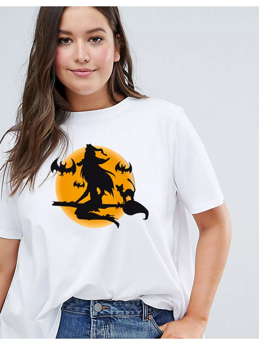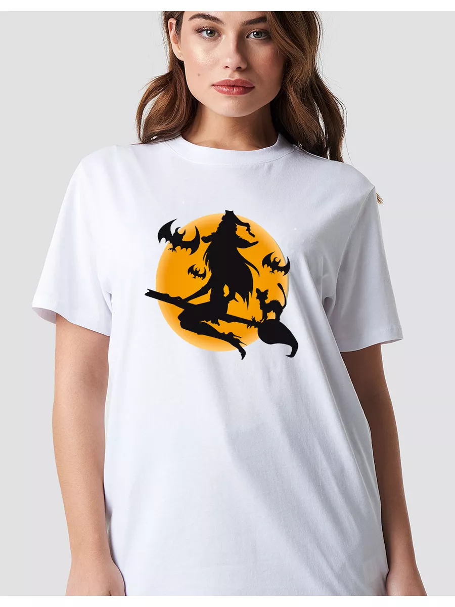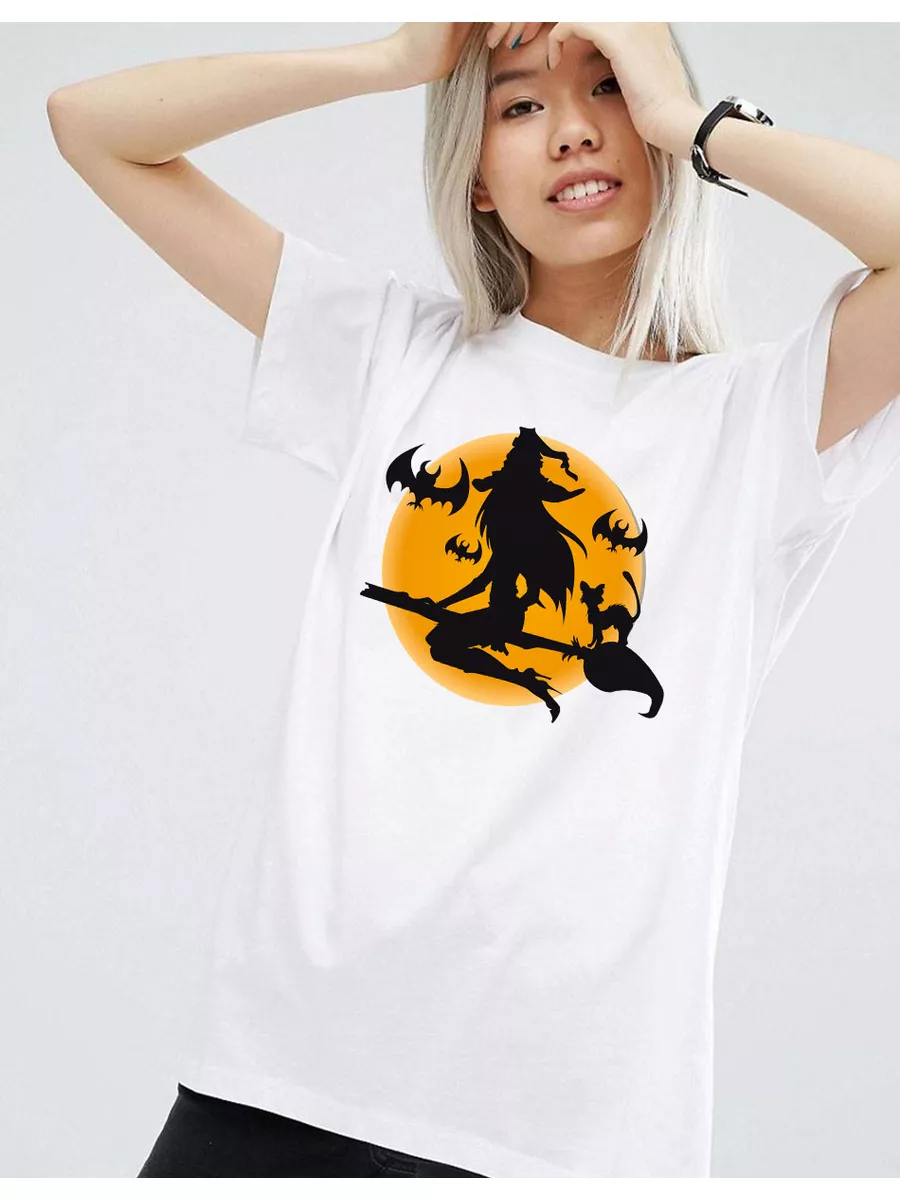 Замучились долго искать идеальный наряд для Хэллоуина? Не волнуйтесь, мы знаем, как сохранить дух этого замечательного праздника и создать эффектный образ, который поразит всех вокруг. Футболка на Хэллоуин с изображением ведьмы на метле и тыквой - идеальный вариант для вас!