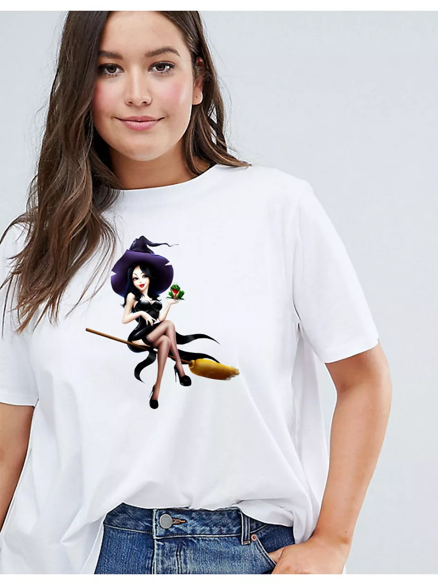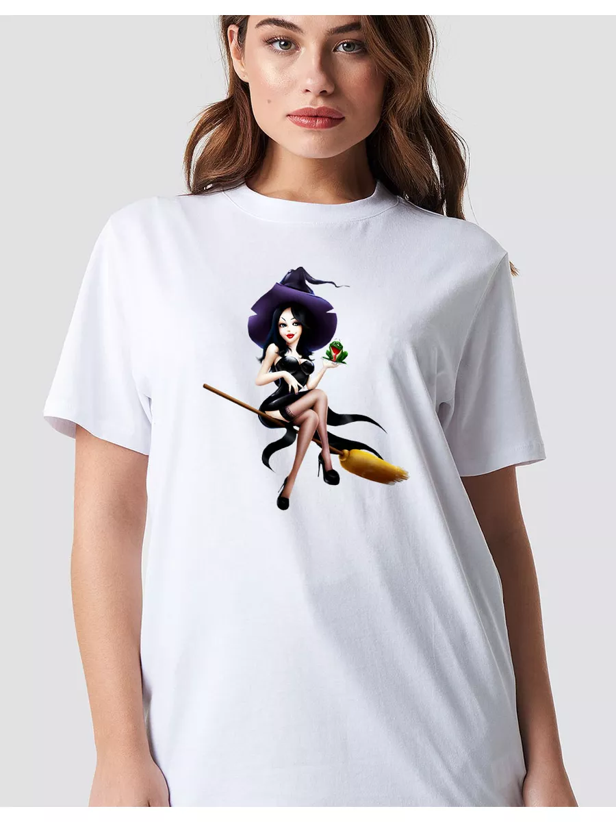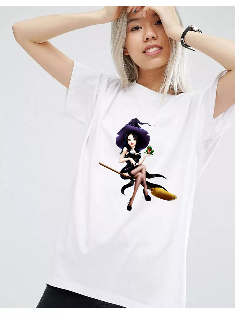 Замучились долго искать идеальный наряд для Хэллоуина? Не волнуйтесь, мы знаем, как сохранить дух этого замечательного праздника и создать эффектный образ, который поразит всех вокруг. Футболка на Хэллоуин с изображением ведьмы на метле и тыквой - идеальный вариант для вас!