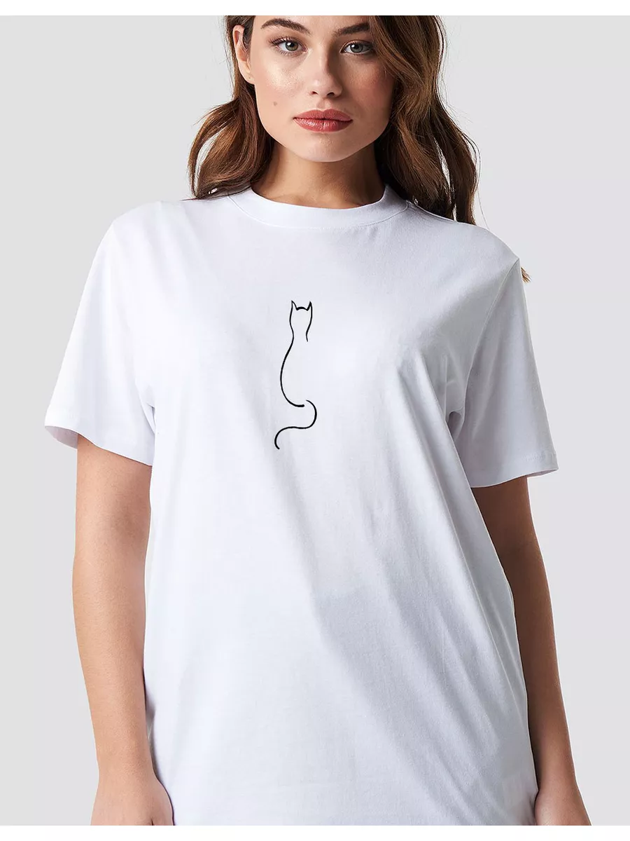 А теперь самое интересное! Наша футболка с котом является настоящим произведением искусства. Мы воплотили минимализм в дизайне, чтобы ваша образность и элегантность не остались незамеченными. Простой и утонченный рисунок кота на футболке станет прекрасным акцентом, который привлечет восхищенные взгляды и возможно, даже подарит вам новых друзей, ведь коты всегда вызывают улыбку и позитивное настроение!