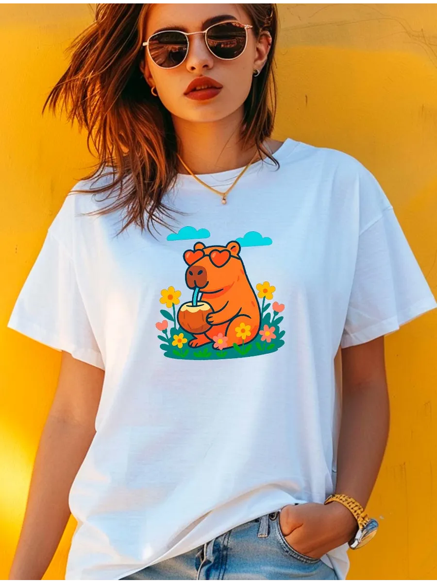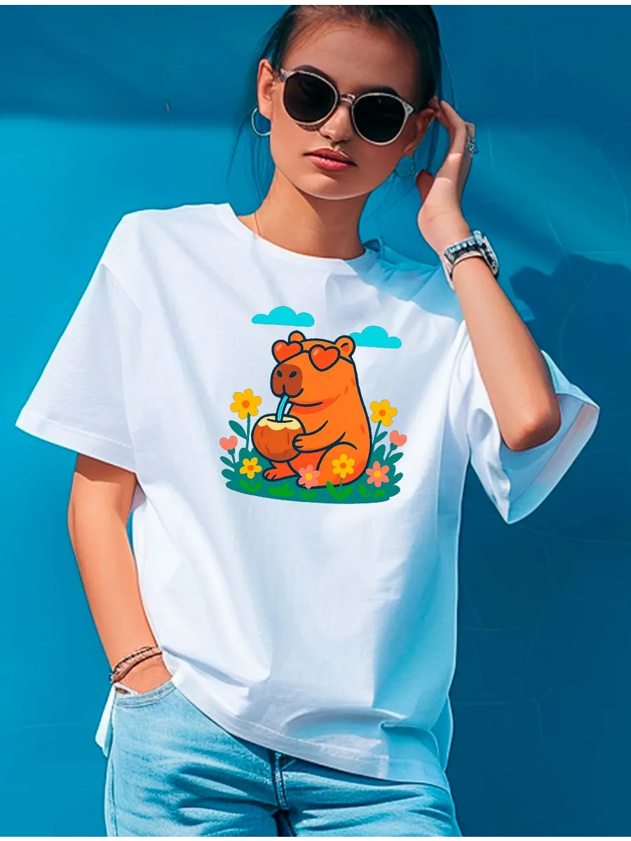 Эта футболка белая с капибарой - настоящий must-have для стильных девушек, которые ценят комфорт и оригинальность! Представьте: мягкий, дышащий хлопок обволакивает вас своей нежностью, а милая капибара на груди притягивает взгляды и дарит заряд позитива. Эта футболка - идеальный выбор для жарких летних дней, ведь ее удлиненный крой и натуральный состав подарят вам максимальный комфорт. Футболка белая с капибарой станет незаменимой вещью в вашем гардеробе, будь то прогулка по городу, встреча с друзьями или просто уютный вечер дома. Ее универсальный дизайн легко сочетается с любыми брюками, шортами или юбками, а яркий принт с капибарой добавит вашему образу игривости и индивидуальности. Мы используем только высококачественный хлопок, который приятен к телу и не вызывает аллергии. А благодаря технологии DTF печати, изображение капибары на футболке будет радовать вас своей яркостью и четкостью долгие годы. Эта футболка - не просто одежда, это выражение вашей индивидуальности, ваш стиль, ваш комфорт! Подарите себе или своим близким эту милую и практичную вещь, которая станет любимцем в гардеробе.