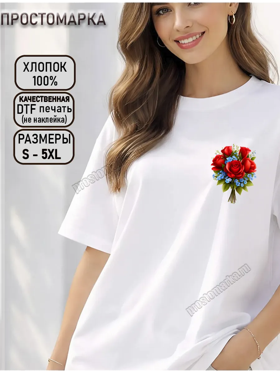 Представляем вам стильную и комфортную женскую базовую футболку белая нарядная с розами весна от бренда "Просто Марка"! Эта футболка станет отличным подарком для любой девушки, которая ценит удобство и оригинальный стиль. Свободный крой и удлиненная длина идеально подойдут для высоких девушек, обеспечивая максимальный комфорт в течение дня. Футболка выполнена из 100% хлопка, что делает ее приятной к телу и позволяет коже дышать. Яркая аппликация с цветами добавит вашему образу игривости и индивидуальности. Нанесение выполнено методом ДТФ печати, что гарантирует стойкость и яркость рисунка даже после многочисленных стирок. Эта футболка станет незаменимой вещью в вашем гардеробе, прекрасно сочетаясь как с джинсами, так и с юбками.