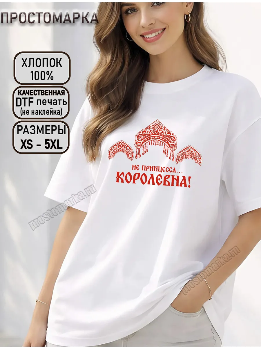 Эта базовая футболка в трендовом коричневом цвете станет настоящим хитом вашего гардероба! Сделана из 100% хлопка, плотности 160грамм, она невероятно мягкая и приятная к телу, а свободный крой подарит вам максимальный комфорт в течение всего дня. Яркая красная надпись "не принцесса, королевна" в славянском стиле выполнена с помощью качественной ДТФ печати, которая не выцветает и не трескается после стирки. Эта футболка - идеальный выбор для создания стильных и непринужденных образов. Она прекрасно сочетается как с джинсами, так и с юбками, а ее универсальный коричневый цвет легко впишется в любой стиль. Подарите себе или своим близким этот стильный и практичный презент, который станет отличным подарком на 8 марта, Новый год 2026 или любой другой праздник! Футболка с матрешкой от бренда «Просто Марка» — это стильный и оригинальный подарок для любой девушки. Изготовленная из 100% хлопка, она подарит вам комфорт и приятные тактильные ощущения. Яркий дизайн с изображением кокошника, украшенного в славянском стиле, станет настоящим акцентом вашего образа. Эта футболка отлично подойдет для вечеринок, встреч с друзьями или просто для прогулок по городу. Благодаря универсальному дизайну, она прекрасно впишется в любой гардероб и станет любимой вещью на каждый день.