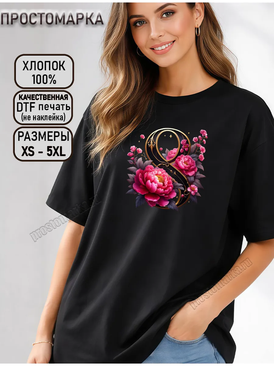 Подарите себе или своим близким настоящий праздник с нашей новой женской футболкой, созданной специально к 8 марта! Эта базовая футболка из 100% хлопка станет идеальным подарком для любой женщины, ценящей комфорт и стиль. Ее свободный крой и удлиненная длина обеспечат максимальное удобство, а мягкий, дышащий материал подарит ощущение легкости и свежести в течение всего дня. Наши футболки выполнены из высококачественного хлопка плотностью 160 г/кв.м., что гарантирует их долговечность и приятные тактильные ощущения. Яркий принт с пионами и надписью "8 марта" создан с помощью технологии DTF печати, которая обеспечивает яркость и стойкость изображения даже после многочисленных стирок. Эта футболка станет прекрасным дополнением к любому образу, будь то повседневный или праздничный. Отличная альтернатива стандартным подаркам, она подчеркнет индивидуальность и подарит заряд позитива!