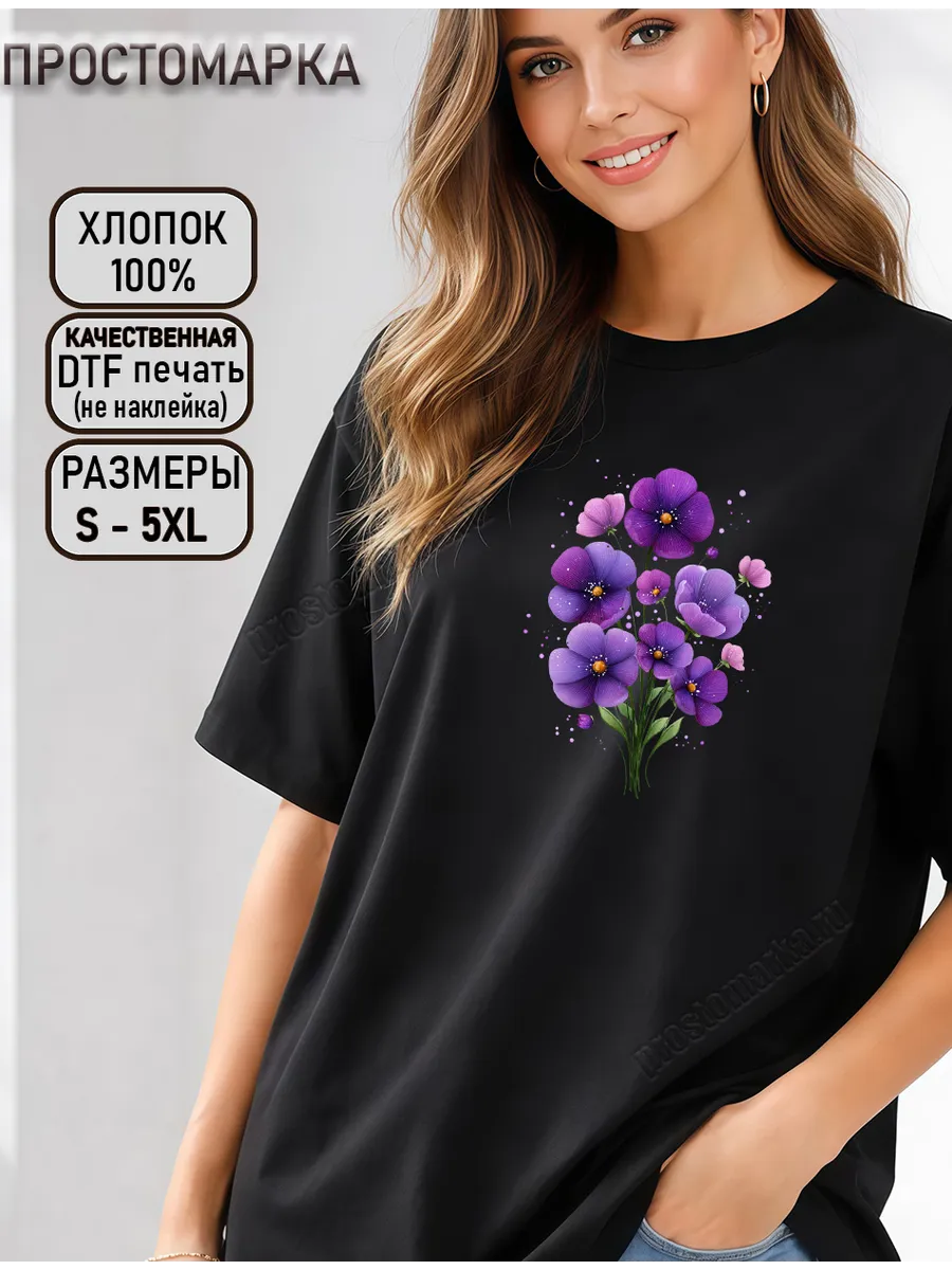 Представляем вам стильную и комфортную женскую базовую футболку сбелая нарядная с фиолетовыми цветами весна от бренда "Просто Марка"! Эта футболка станет отличным подарком для любой девушки, которая ценит удобство и оригинальный стиль. Свободный крой и удлиненная длина идеально подойдут для высоких девушек, обеспечивая максимальный комфорт в течение дня. Футболка выполнена из 100% хлопка, что делает ее приятной к телу и позволяет коже дышать. Яркая аппликация с цветами добавит вашему образу игривости и индивидуальности. Нанесение выполнено методом ДТФ печати, что гарантирует стойкость и яркость рисунка даже после многочисленных стирок. Эта футболка станет незаменимой вещью в вашем гардеробе, прекрасно сочетаясь как с джинсами, так и с юбками.