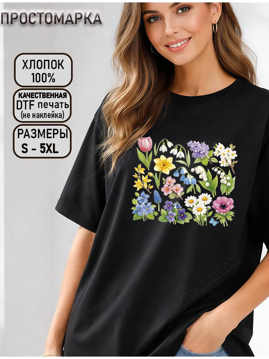 Представляем вам стильную и комфортную женскую базовую футболку черная нарядная с цветами весна от бренда "Просто Марка"! Эта футболка станет отличным подарком для любой девушки, которая ценит удобство и оригинальный стиль. Свободный крой и удлиненная длина идеально подойдут для высоких девушек, обеспечивая максимальный комфорт в течение дня. Футболка выполнена из 100% хлопка, что делает ее приятной к телу и позволяет коже дышать. Яркая аппликация с цветами добавит вашему образу игривости и индивидуальности. Нанесение выполнено методом ДТФ печати, что гарантирует стойкость и яркость рисунка даже после многочисленных стирок. Эта футболка станет незаменимой вещью в вашем гардеробе, прекрасно сочетаясь как с джинсами, так и с юбками.