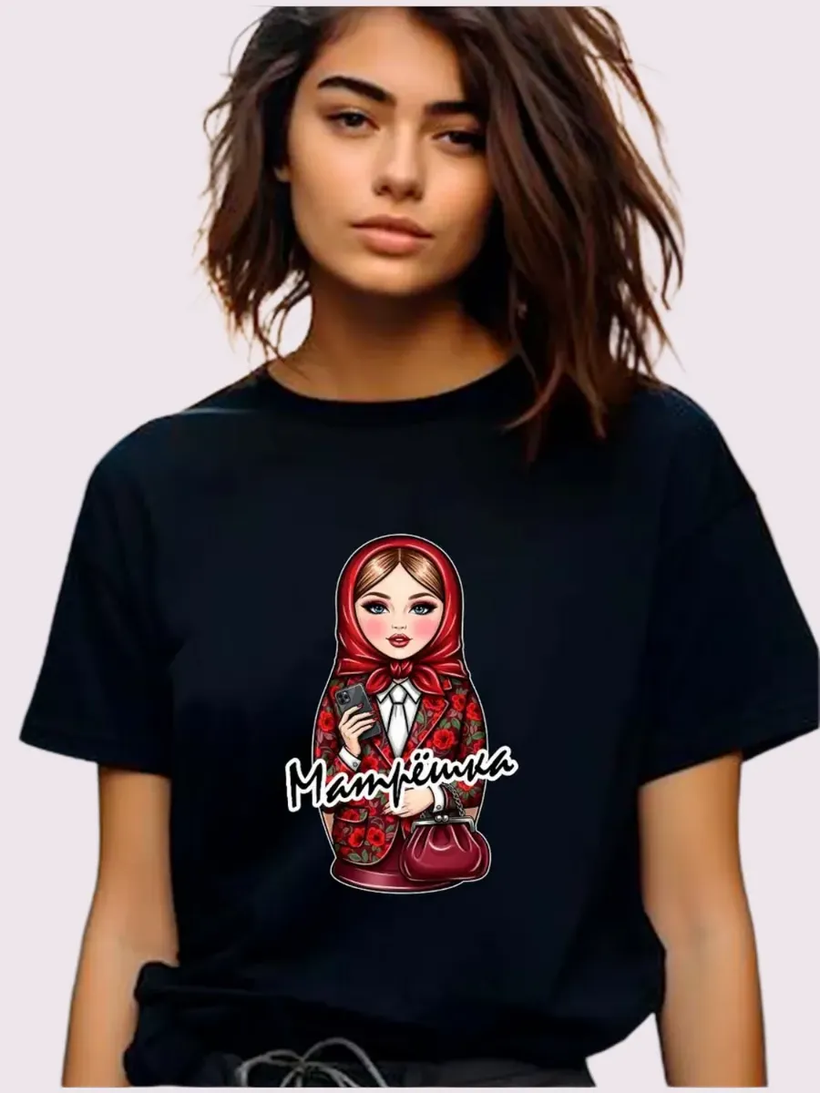 Представляем вашему вниманию уникальную футболку с матрешкой — стильный и модный предмет одежды, который прекрасно подчеркнёт вашу индивидуальность. Изготовленная из 100% хлопка, данная футболка обеспечивает комфорт и отлично подходит для повседневной носки. Прямого кроя, она удобно сидит на фигуре и подходит для любого типа телосложения.