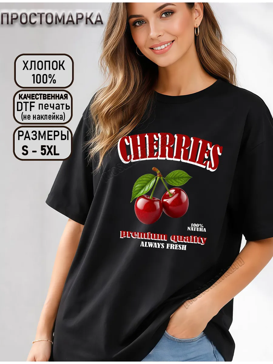 Закажите прямо сейчас и будьте в центре внимания! Футболка с принтом вишни и черешни — ваш летний must-have!