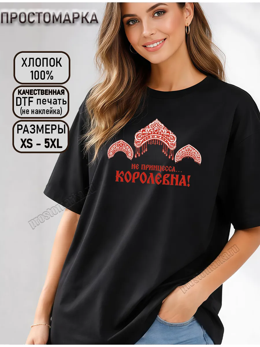 Эта базовая футболка в трендовом коричневом цвете станет настоящим хитом вашего гардероба! Сделана из 100% хлопка, плотности 160грамм, она невероятно мягкая и приятная к телу, а свободный крой подарит вам максимальный комфорт в течение всего дня. Яркая красная надпись "не принцесса, королевна" в славянском стиле выполнена с помощью качественной ДТФ печати, которая не выцветает и не трескается после стирки. Эта футболка - идеальный выбор для создания стильных и непринужденных образов. Она прекрасно сочетается как с джинсами, так и с юбками, а ее универсальный коричневый цвет легко впишется в любой стиль. Подарите себе или своим близким этот стильный и практичный презент, который станет отличным подарком на 8 марта, Новый год 2026 или любой другой праздник! Футболка с матрешкой от бренда «Просто Марка» — это стильный и оригинальный подарок для любой девушки. Изготовленная из 100% хлопка, она подарит вам комфорт и приятные тактильные ощущения. Яркий дизайн с изображением кокошника, украшенного в славянском стиле, станет настоящим акцентом вашего образа. Эта футболка отлично подойдет для вечеринок, встреч с друзьями или просто для прогулок по городу. Благодаря универсальному дизайну, она прекрасно впишется в любой гардероб и станет любимой вещью на каждый день.