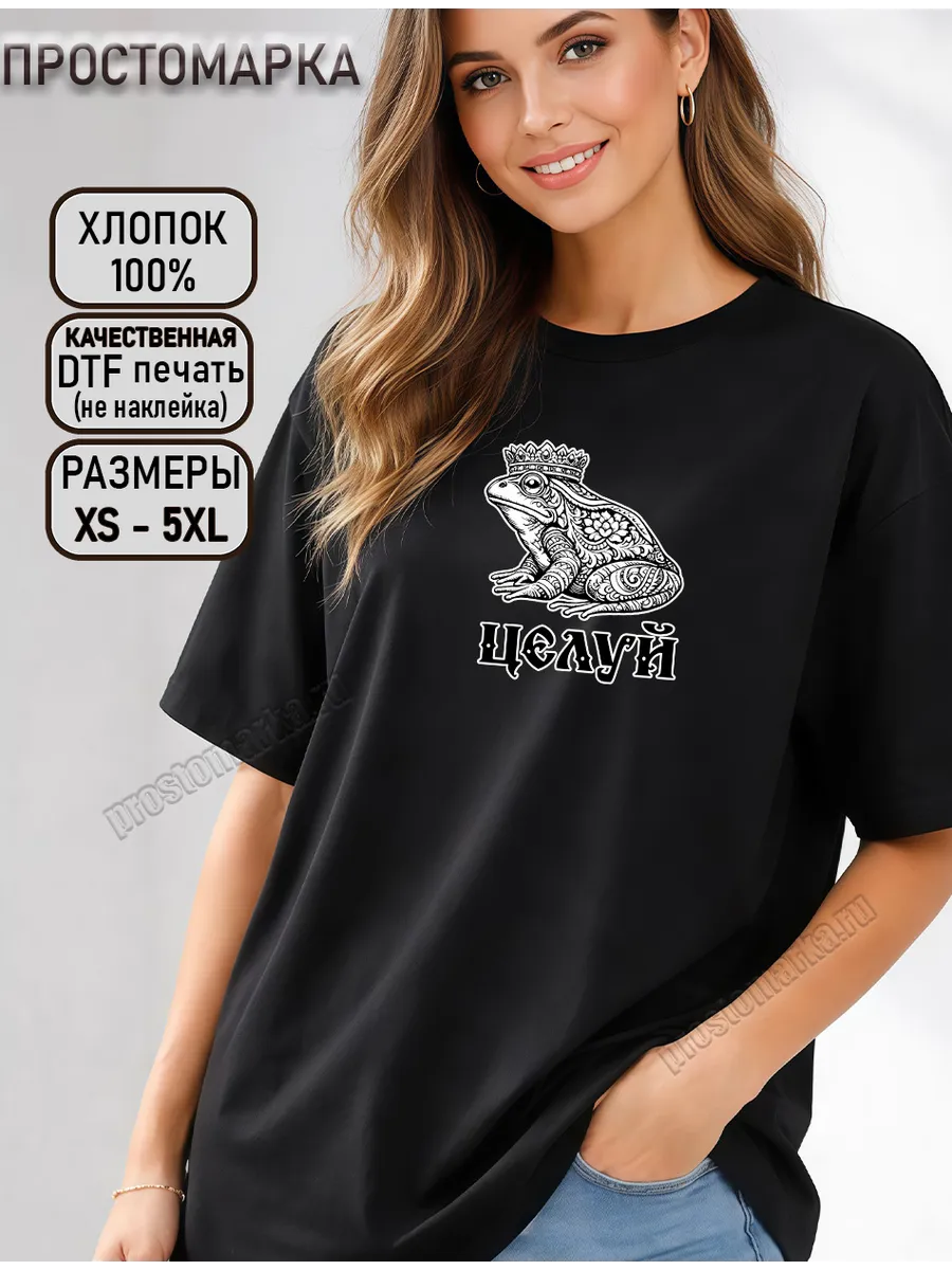 Эта базовая футболка с изображением царевны лягушки в короне и надписью целуй в трендовом коричневом цвете станет настоящим хитом вашего гардероба! Сделана из 100% хлопка, плотности 160грамм, она невероятно мягкая и приятная к телу, а свободный крой подарит вам максимальный комфорт в течение всего дня. Яркая надпись "целуй" в славянском стиле выполнена с помощью качественной ДТФ печати, которая не выцветает и не трескается после стирки. Эта футболка - идеальный выбор для создания стильных и непринужденных образов. Она прекрасно сочетается как с джинсами, так и с юбками, а ее универсальный коричневый цвет легко впишется в любой стиль. Подарите себе или своим близким этот стильный и практичный презент, который станет отличным подарком на 8 марта, Новый год 2026 или любой другой праздник! Футболка с матрешкой от бренда «Просто Марка» — это стильный и оригинальный подарок для любой девушки. Изготовленная из 100% хлопка, она подарит вам комфорт и приятные тактильные ощущения. Яркий дизайн с изображением лягушки, украшенного в славянском стиле, станет настоящим акцентом вашего образа. Эта футболка отлично подойдет для вечеринок, встреч с друзьями или просто для прогулок по городу. Благодаря универсальному дизайну, она прекрасно впишется в любой гардероб и станет любимой вещью на каждый день.