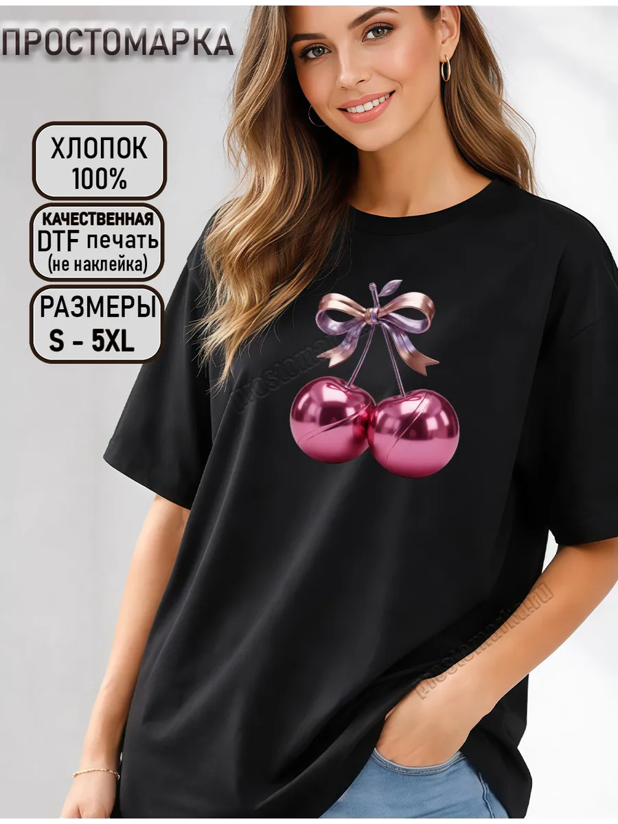 Закажите прямо сейчас и будьте в центре внимания! Футболка с принтом вишни и черешни — ваш летний must-have!