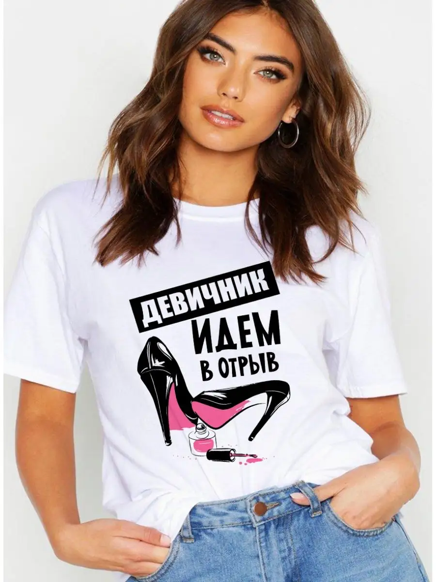 "Футболка для невесты: стильный акцент на свадебной церемонии! На девичник, банда невесты, счастливая невеста, подружка невесты, с надписью невеста. Наша футболка для невесты – это необычное сочетание стиля и оригинальности, чтобы выделиться на фоне ожесточенной борьбы за главный приз в чьей-то жизни – свадьбе! Главным образом футболка для невесты представлена в традиционном классическом белом цвете, чтобы подчеркнуть вашу нежность и неповторимость. Однако, наш дизайнер добавил небольшую изюминку, чтобы надолго запомнить этот праздник – уникальный принт, мотивом которого является знакомая каждому с детства матрешка. Будьте уверены, что эта футболка привлечет внимание всех, кто окажется поблизости. Невеста – понятие, которым каждый ассоциирует великолепие, романтику и загадочность.Каждый должен знать, что вы – невеста, и эта футболка поможет вам об этом напомнить. Не упустите возможность создать ошеломляющий образ в такой особенный момент. Для вашего комфорта и наиболее подходящего размера мы предлагаем множество доступных вариантов, которые позволят вам найти свой идеальный размер. Закажите сейчас футболку для невесты и погрузитесь в мир неповторимости и оригинальности вместе с нами!" Классическая белая футболка свободного кроя с принтом Невеста и подружки невесты станет отличным вариантом для нарядов на девичник поможет добавить вашему празднику изюминки и веселья! Футболки для девичника выполнены из хлопка. Сделайте Ваш девичник еще более привлекательным все оценят и получатся отличные фото на память! Для каждой подружки можно выбрать свою надпись Женские Футболки Oversize с яркими принтами - отличный вариант для фотосессии и незабываемого праздника. Футболка универсальна и применима как спортивная для бега и фитнеса домашняя, повседневная одежда, большие размеры, женская одежда для сна для офиса для работы для прогулок для встреч с друзьями, для свиданий, для подружек невесты. Женская футболка - это отличный подарок для подруги для мамы для сестры.