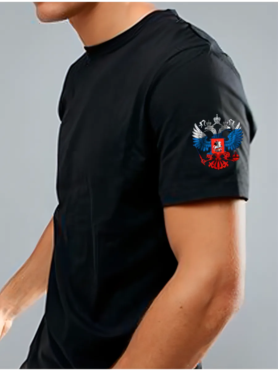 Футболка мужская черная с качественным принтом хлопка премиального качества. Хороший подарок мужчине или парню на 23 февраля, День Воздушно-десантных войск и даже Новый год! Актуальная в наше время одежда в классическом стиле с российской символикой - флагом России и гербом.Таким образом, это одновременно и патриотическая и базовая однотонная футболка. Футболка плотная хлопок 100% качества пенье 160г/м2. Мягкий шелковистый дышащий трикотаж, не скатывается, комфортный к телу. Хлопковая модель с коротким рукавом может использоваться как практичная повседневная одежда для дома, для спорта, для офиса. Подойдет любителям стиля милитари, поскольку выглядит как военная армейская футболка с символикой Z. Понравится тем, кто хочет выразить свою поддержку армии России и представителям таких профессий как полиция или ФСБ, спецназ или Росгвардия. Модель хорошо садится на стандартную или худощавую фигуру, на средний или высокий рост.