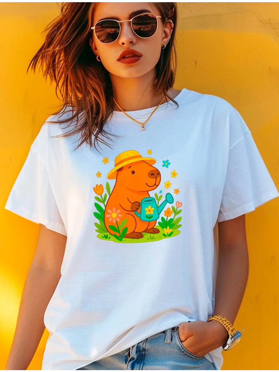 Эта футболка белая с капибарой - настоящий must-have для стильных девушек, которые ценят комфорт и оригинальность! Представьте: мягкий, дышащий хлопок обволакивает вас своей нежностью, а милая капибара на груди притягивает взгляды и дарит заряд позитива. Эта футболка - идеальный выбор для жарких летних дней, ведь ее удлиненный крой и натуральный состав подарят вам максимальный комфорт. Футболка белая с капибарой станет незаменимой вещью в вашем гардеробе, будь то прогулка по городу, встреча с друзьями или просто уютный вечер дома. Ее универсальный дизайн легко сочетается с любыми брюками, шортами или юбками, а яркий принт с капибарой добавит вашему образу игривости и индивидуальности. Мы используем только высококачественный хлопок, который приятен к телу и не вызывает аллергии. А благодаря технологии DTF печати, изображение капибары на футболке будет радовать вас своей яркостью и четкостью долгие годы. Эта футболка - не просто одежда, это выражение вашей индивидуальности, ваш стиль, ваш комфорт! Подарите себе или своим близким эту милую и практичную вещь, которая станет любимцем в гардеробе.