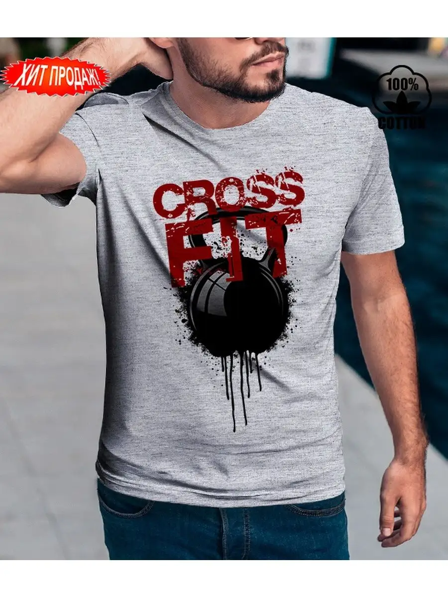 Мужская футболка с принтом Cross FitОтличное решение для подарка себе и близким.Ткань футболки-100% Хлопок, что гарантируетВам комфортное использование на протяжении долгого времени.Супер легкая, приятная телу ткань, легко гладится.