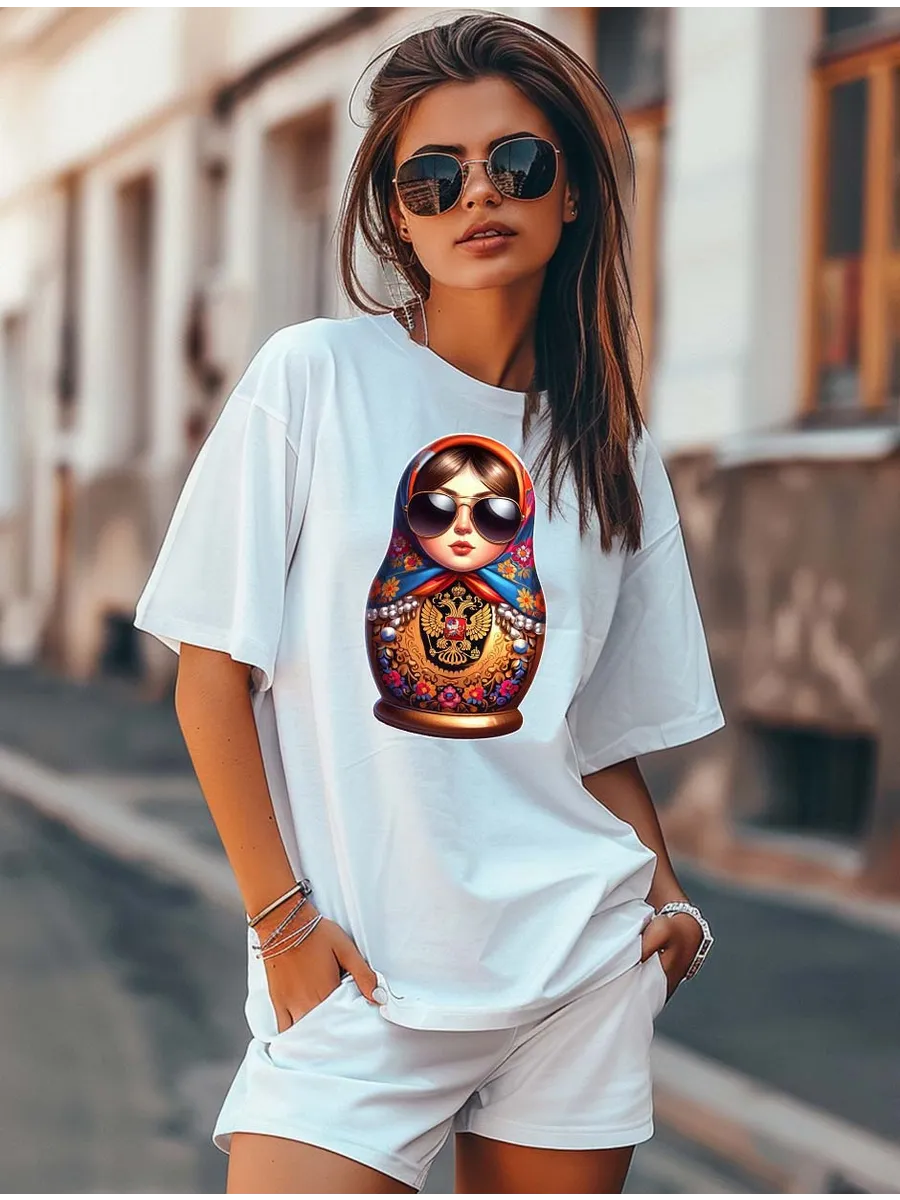 Представляем вашему вниманию уникальную футболку с матрешкой, которая станет ярким акцентом в вашем гардеробе. Эта футболка прямого кроя идеально подходит для любителей оригинальных вещей, подчеркивающих национальную символику России. Изготовленная с помощью современной дтф печати, она отличается высоким качеством изображения и долговечностью.