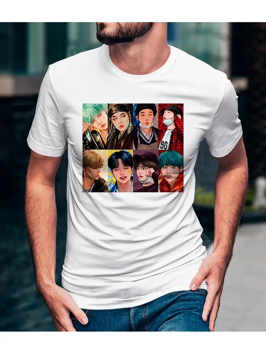 Мужская футболка прямого кроя с принтом BTS.Отличное решение для подарка себе и близким.Ткань футболки-100% Хлопок, что гарантируетВам комфортное использование на протяжении долгого времени.Мягкий натуральный хлопок гипоаллергенен, не раздражает кожу и позволяет ей дышать.Супер легкая, приятная телу ткань легко гладится.