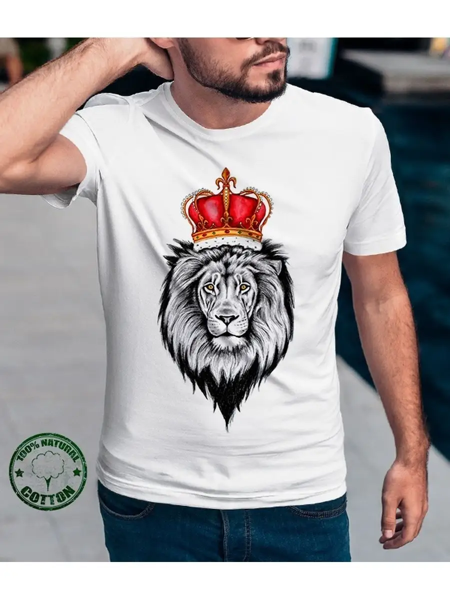Футболка с принтом Лев-для самых мужественных.Стильный и брутальный принт подчеркнёт и выделит мужчину из толпы - это отличный подарок мужчине, чтобы подчеркнуть его мужественные качества! Футболка выполнена из дышащего материла.Может сочетаться с джинсами и спортивными брюкамипроизведена из 100% качественного хлопка.
