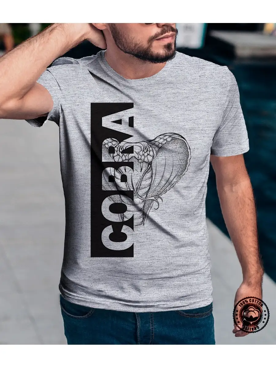 Мужская футболка из 100% натурального хлопка, с принтом Кобра, 1шт прямого кроя с коротким рукавом и круглым воротом.За счет свободного кроя не сковывает движений и прекрасно подходит как для повседневного гардероба,так и для занятий спортом. Мягкий натуральный хлопок гипоаллергенен,не раздражает кожу и позволяет ей дышат.