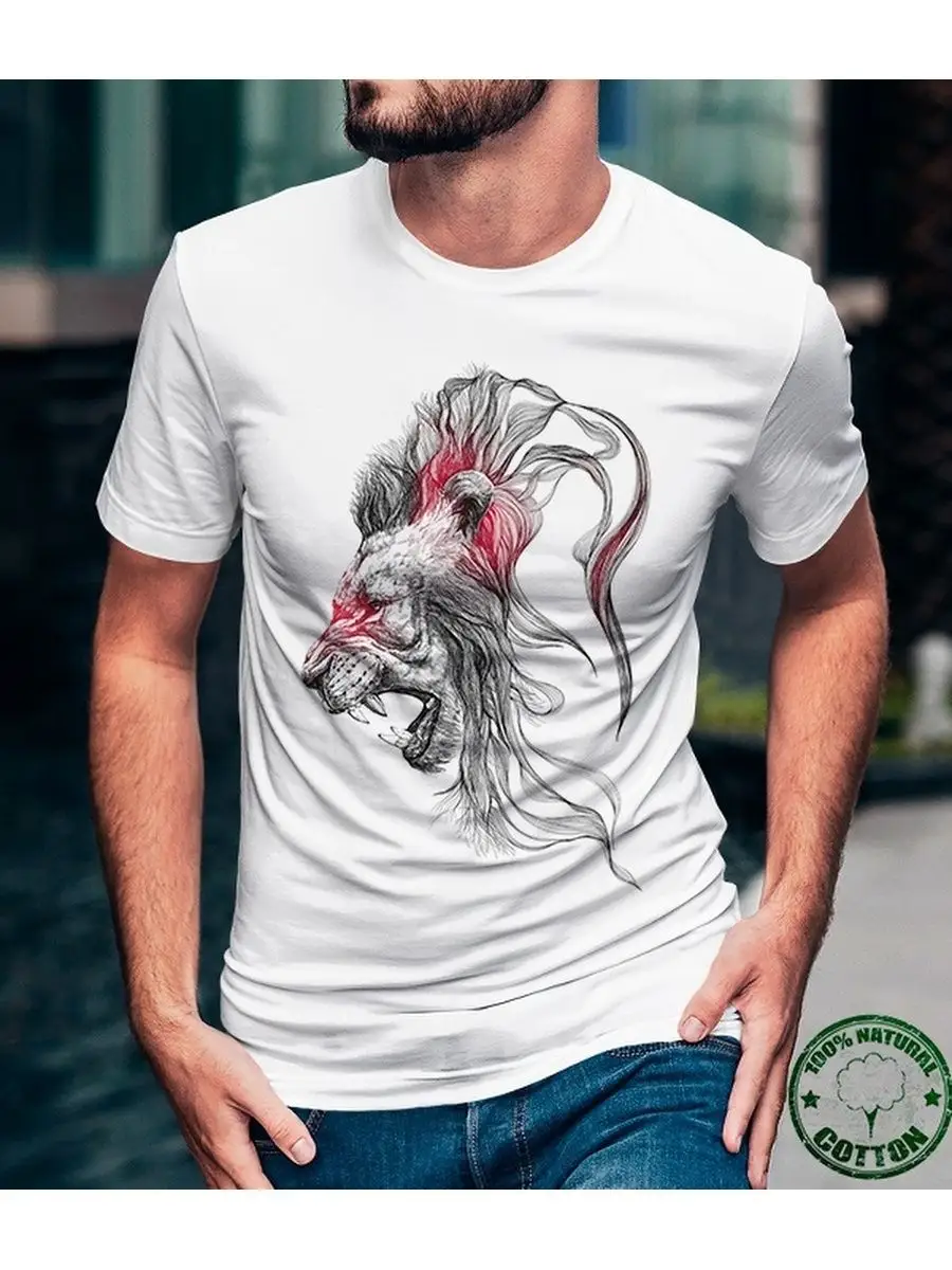 Футболка с принтом Лев-для самых мужественных.Стильный и брутальный принт подчеркнёт и выделит мужчину из толпы - это отличный подарок мужчине, чтобы подчеркнуть его мужественные качества! Футболка выполнена из дышащего материла.Может сочетаться с джинсами и спортивными брюкамипроизведена из 100% качественного хлопка.