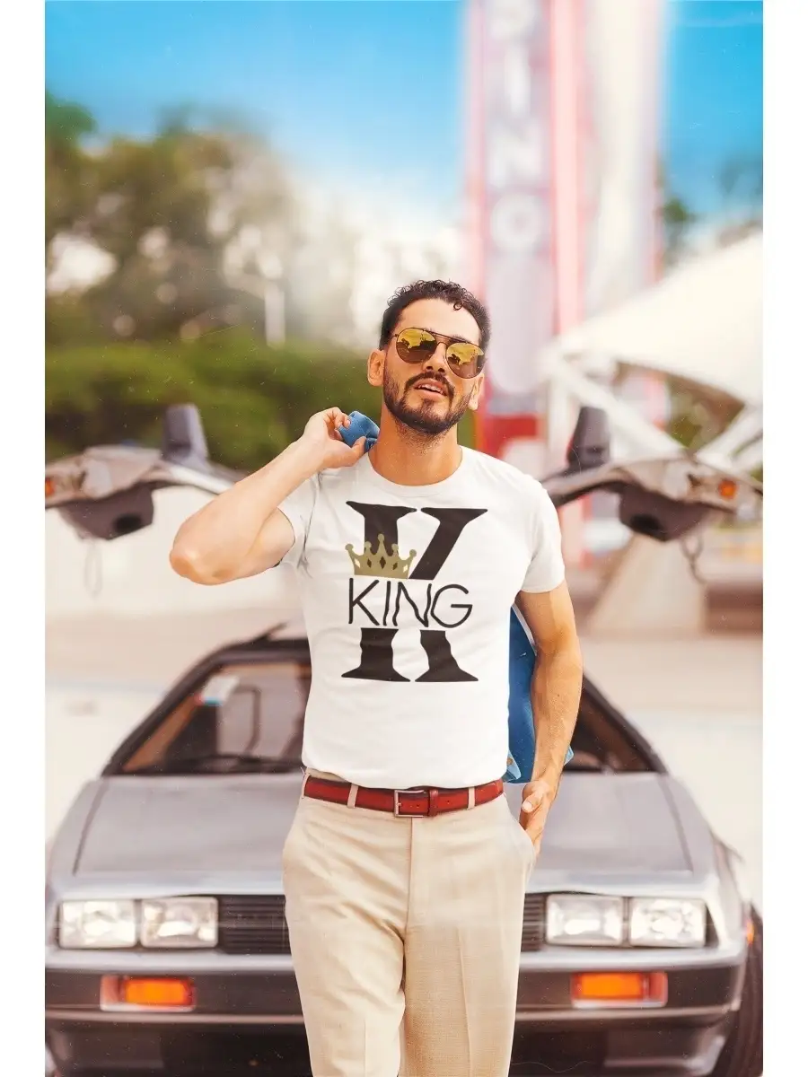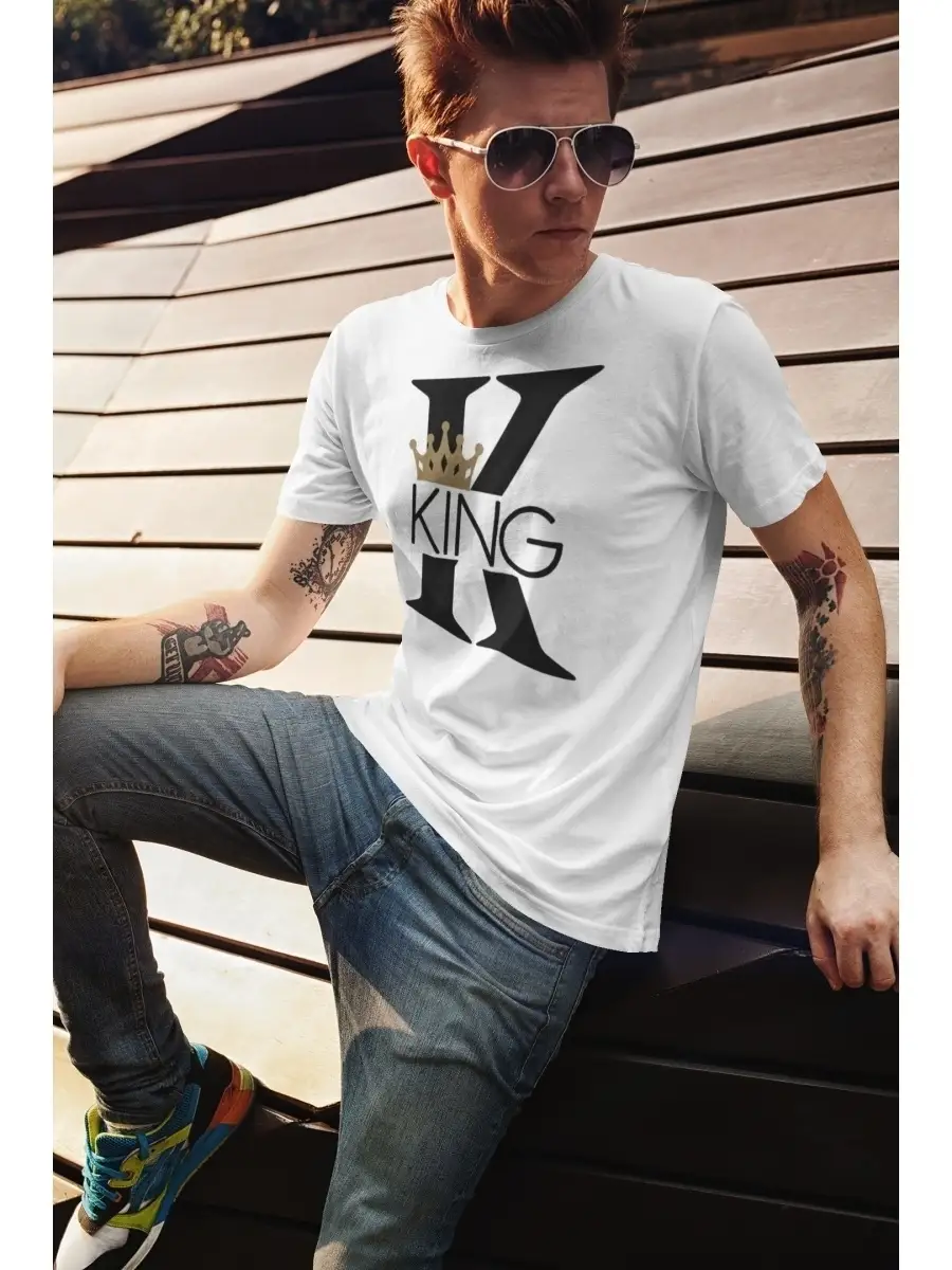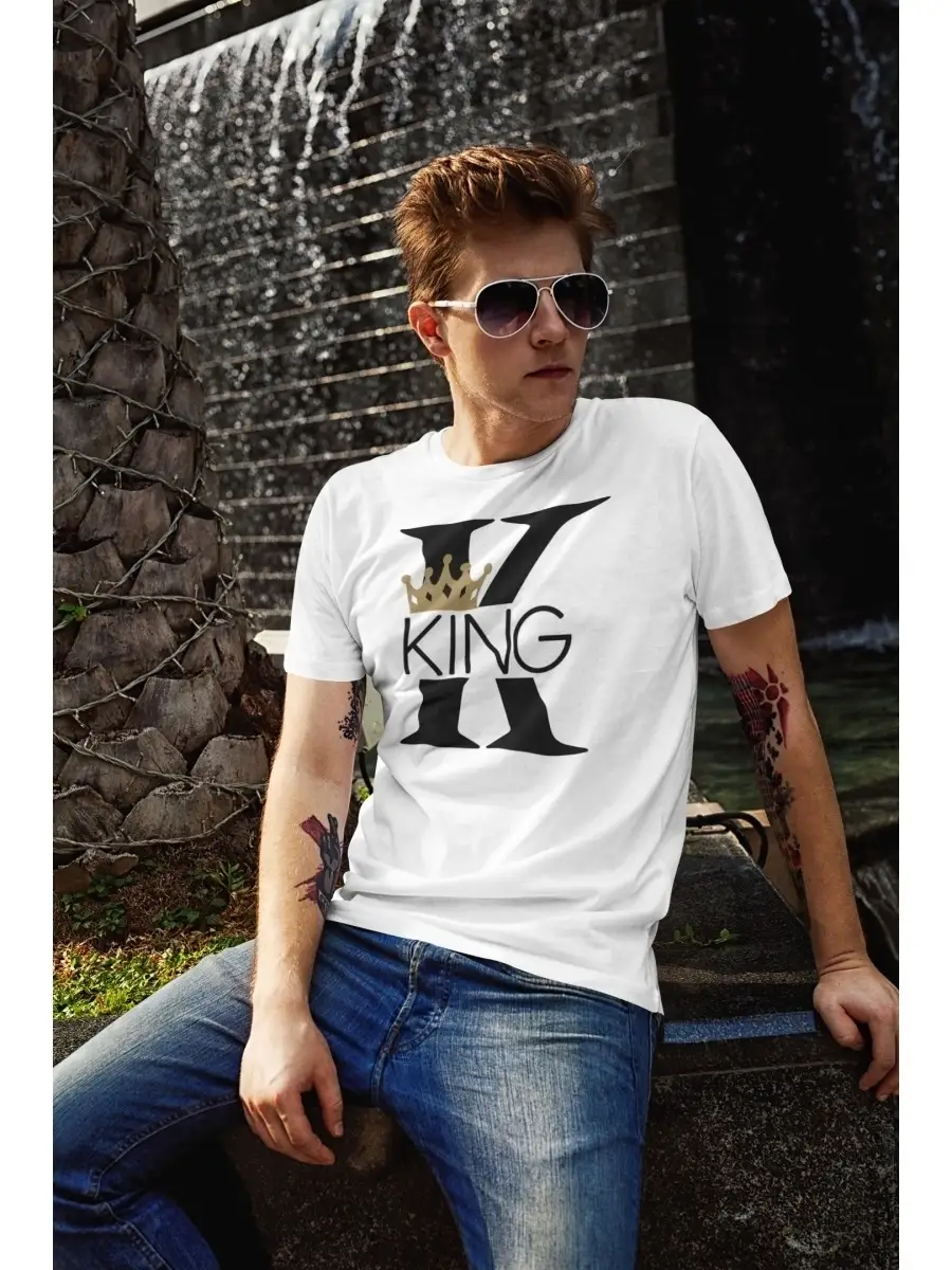 Мужская футболка с принтом King. Есть пара женская Queen артикул товара 42489732Отличное решение для подарка себе и близким.Ткань футболки-100% Хлопок, что гарантируетВам комфортное использование на протяжении долгого времени.Супер легкая, приятная телу ткань легко гладится.