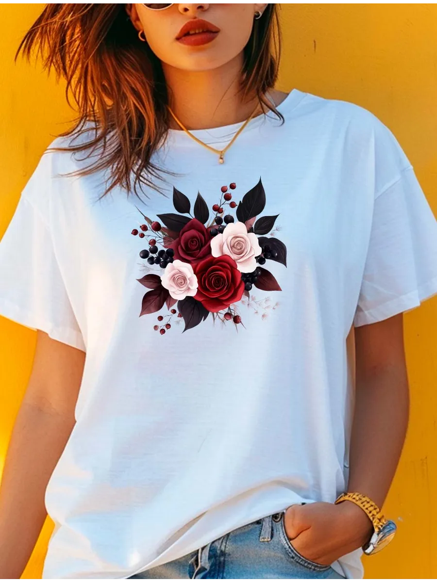Представляем вам стильную и комфортную женскую базовую футболку с бордовыми розами от бренда "Просто Марка"! Эта футболка станет отличным подарком для любой девушки, которая ценит удобство и оригинальный стиль. Свободный крой и удлиненная длина идеально подойдут для высоких девушек, обеспечивая максимальный комфорт в течение дня. Футболка выполнена из 100% хлопка, что делает ее приятной к телу и позволяет коже дышать. Яркая аппликация с цветами добавит вашему образу игривости и индивидуальности. Нанесение выполнено методом ДТФ печати, что гарантирует стойкость и яркость рисунка даже после многочисленных стирок. Эта футболка станет незаменимой вещью в вашем гардеробе, прекрасно сочетаясь как с джинсами, так и с юбками.