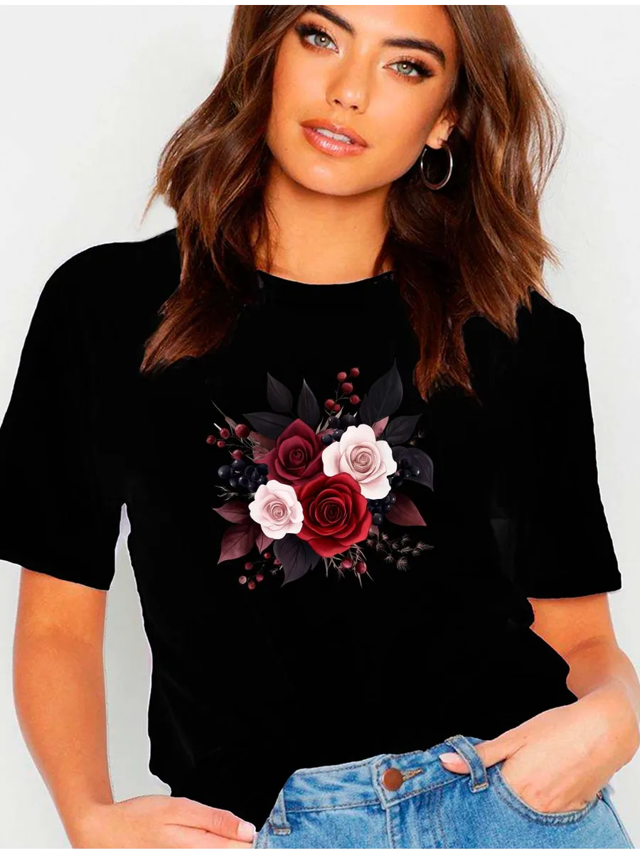 Черная футболка с розой