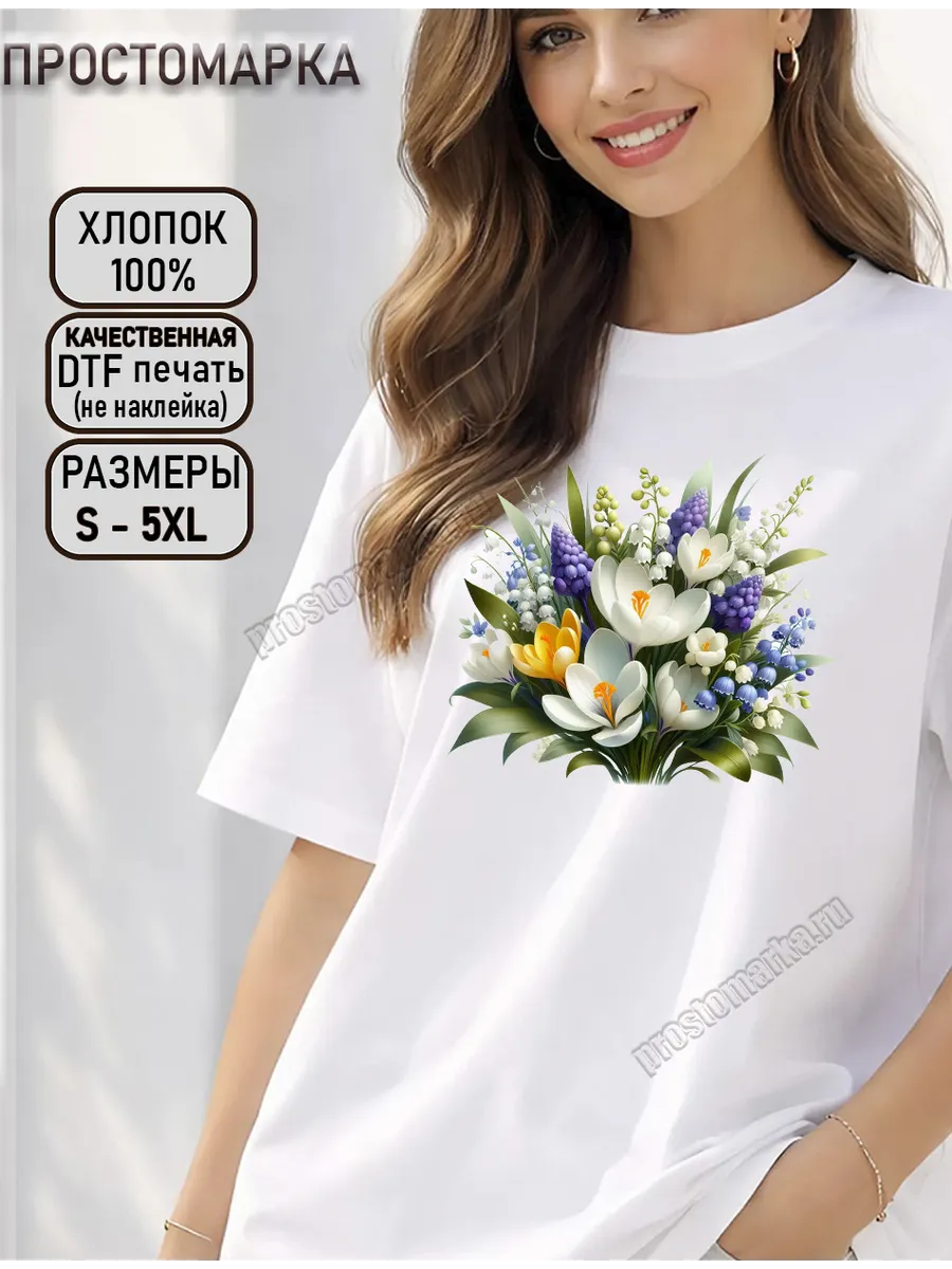 Представляем вам стильную и комфортную женскую базовую футболку с ландышами от бренда "Просто Марка"! Эта футболка станет отличным подарком для любой девушки, которая ценит удобство и оригинальный стиль. Свободный крой и удлиненная длина идеально подойдут для высоких девушек, обеспечивая максимальный комфорт в течение дня. Футболка выполнена из 100% хлопка, что делает ее приятной к телу и позволяет коже дышать. Яркая аппликация с цветами добавит вашему образу игривости и индивидуальности. Нанесение выполнено методом ДТФ печати, что гарантирует стойкость и яркость рисунка даже после многочисленных стирок. Эта футболка станет незаменимой вещью в вашем гардеробе, прекрасно сочетаясь как с джинсами, так и с юбками.