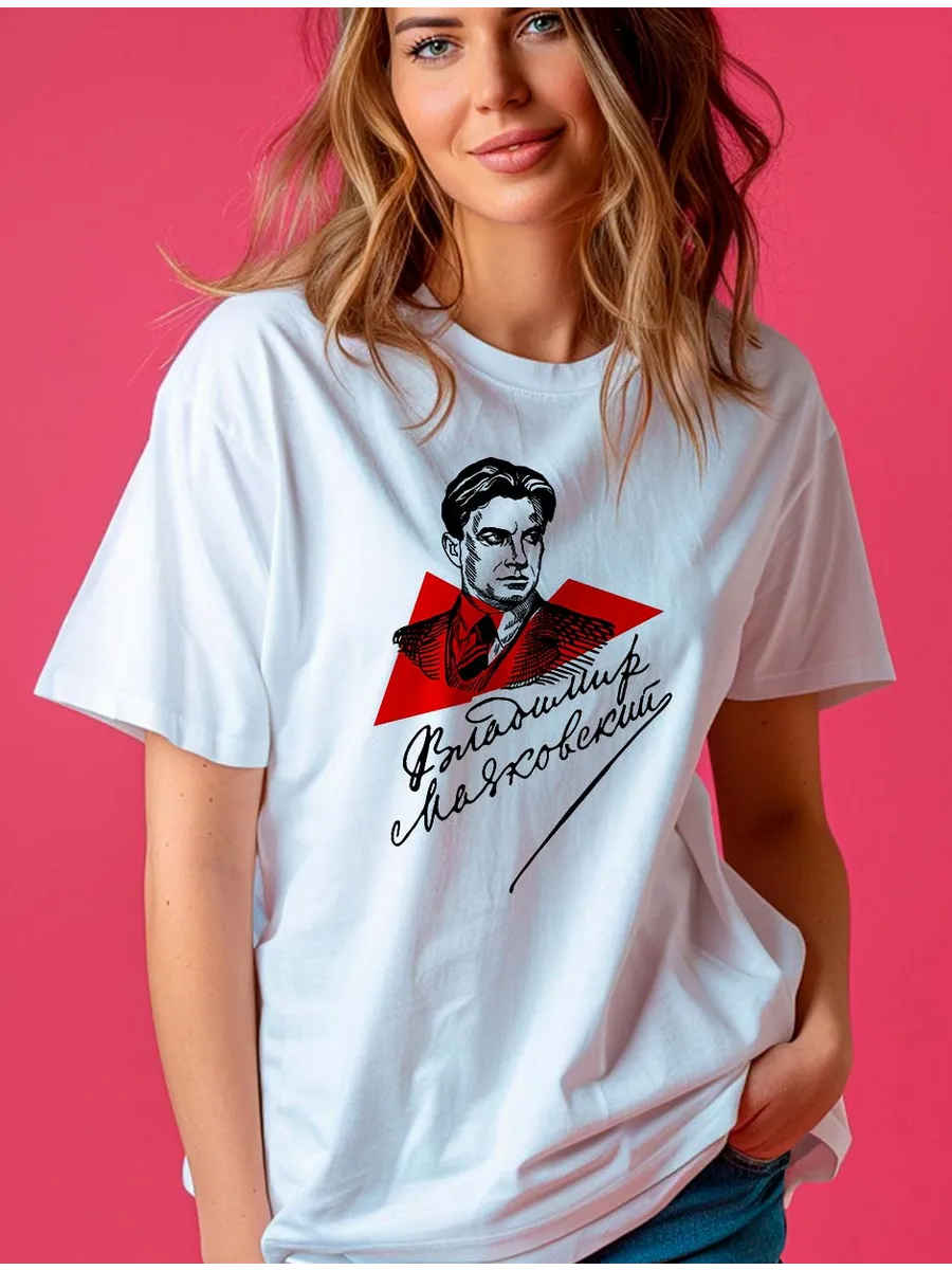 В нашей коллекции представлены футболки с писателями и поэтами, футболка с принтом Владимир Маяковский, Александр Сергеевич Пушкин, Лев Толстой и многие другие. Отличное решение для подарка себе и близким. Ткань плотная, приятная к телу,хлопок 100% Крой футболки-свободный,модный,легкий оверсайз-очень модно и стильно. Футболку такого кроя можно носить с любой одеждой-джинсами,юбкой,костюмом.Оригинальный принт выделит Вас среди других девушек. Отличный подарок на день учителя, новый год, 8 марта или просто без повода любимому учителю.