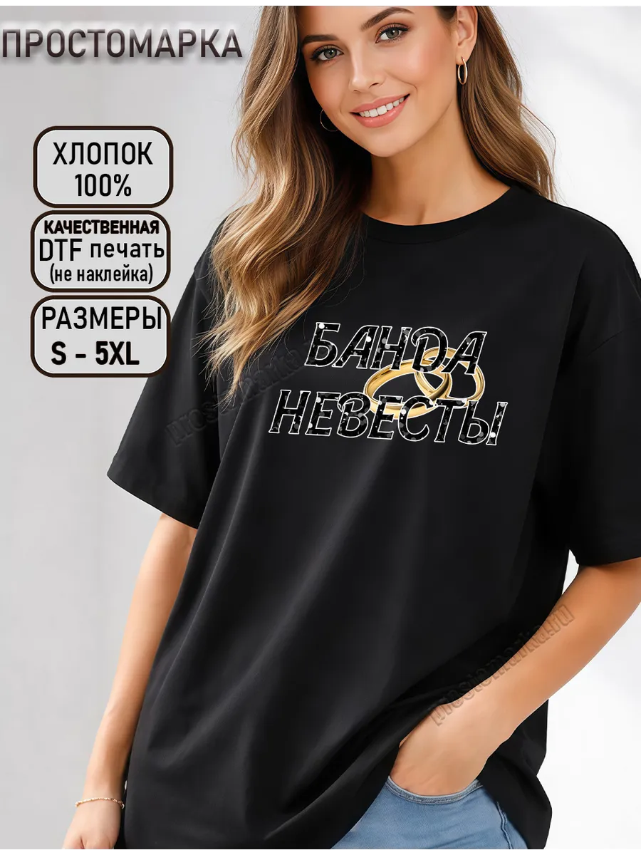 "Футболка для невесты: стильный акцент на свадебной церемонии! На девичник, банда невесты, счастливая невеста, подружка невесты, с надписью невеста. Наша футболка для невесты – это необычное сочетание стиля и оригинальности, чтобы выделиться на фоне ожесточенной борьбы за главный приз в чьей-то жизни – свадьбе! Главным образом футболка для невесты представлена в традиционном классическом белом цвете, чтобы подчеркнуть вашу нежность и неповторимость. Однако, наш дизайнер добавил небольшую изюминку, чтобы надолго запомнить этот праздник – уникальный принт, мотивом которого является знакомая каждому с детства матрешка. Будьте уверены, что эта футболка привлечет внимание всех, кто окажется поблизости. Невеста – понятие, которым каждый ассоциирует великолепие, романтику и загадочность.Каждый должен знать, что вы – невеста, и эта футболка поможет вам об этом напомнить. Не упустите возможность создать ошеломляющий образ в такой особенный момент. Для вашего комфорта и наиболее подходящего размера мы предлагаем множество доступных вариантов, которые позволят вам найти свой идеальный размер. Закажите сейчас футболку для невесты и погрузитесь в мир неповторимости и оригинальности вместе с нами!" Классическая белая футболка свободного кроя с принтом Невеста и подружки невесты станет отличным вариантом для нарядов на девичник поможет добавить вашему празднику изюминки и веселья! Футболки для девичника выполнены из хлопка. Сделайте Ваш девичник еще более привлекательным все оценят и получатся отличные фото на память! Для каждой подружки можно выбрать свою надпись Женские Футболки Oversize с яркими принтами - отличный вариант для фотосессии и незабываемого праздника. Футболка универсальна и применима как спортивная для бега и фитнеса домашняя, повседневная одежда, большие размеры, женская одежда для сна для офиса для работы для прогулок для встреч с друзьями, для свиданий, для подружек невесты. Женская футболка - это отличный подарок для подруги для мамы для сестры.