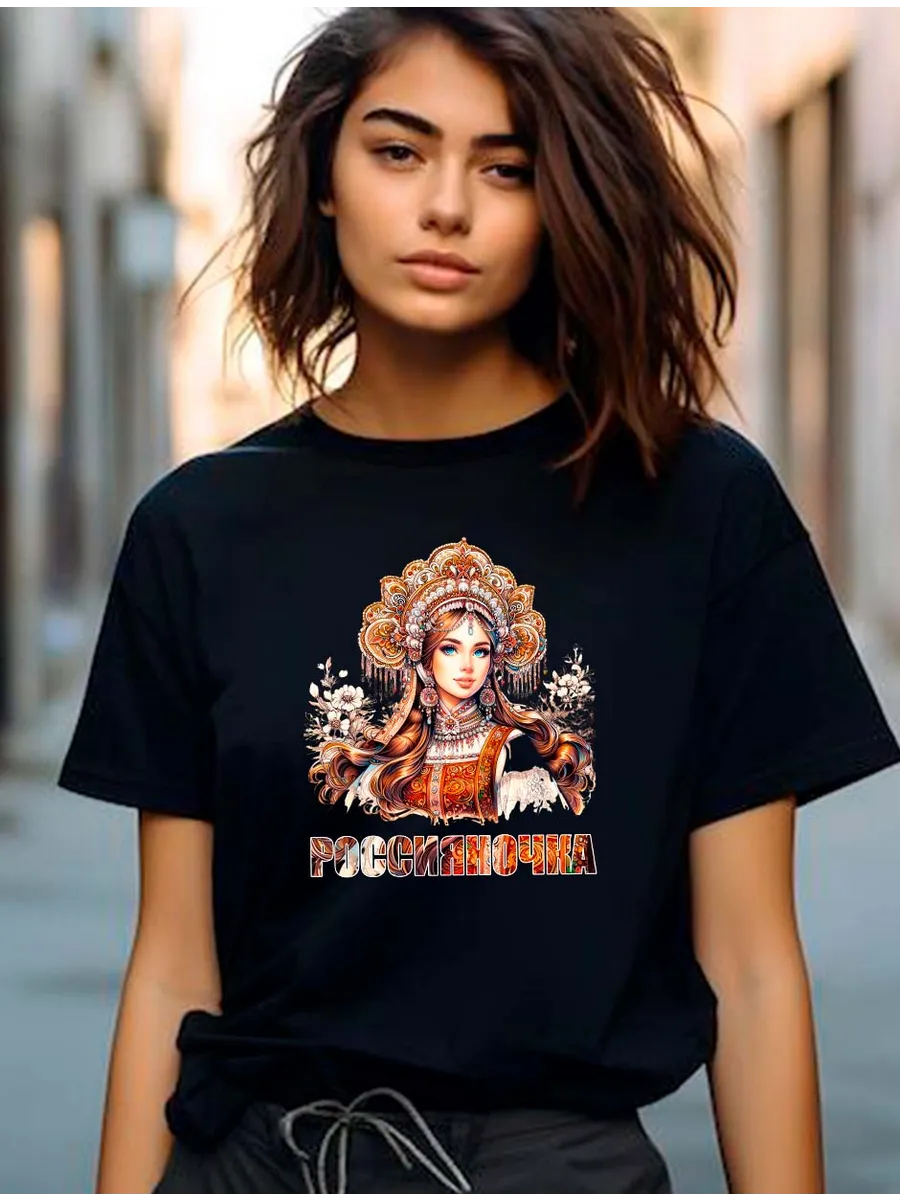 Футболка с матрешкой от бренда «Просто Марка» — это стильный и оригинальный подарок для любой девушки. Изготовленная из 100% хлопка, она подарит вам комфорт и приятные тактильные ощущения. Яркий дизайн с изображением рыжей матрешки, украшенной символикой России, станет настоящим акцентом вашего образа. Эта футболка отлично подойдет для вечеринок, встреч с друзьями или просто для прогулок по городу. Благодаря универсальному дизайну, она прекрасно впишется в любой гардероб и станет любимой вещью на каждый день.