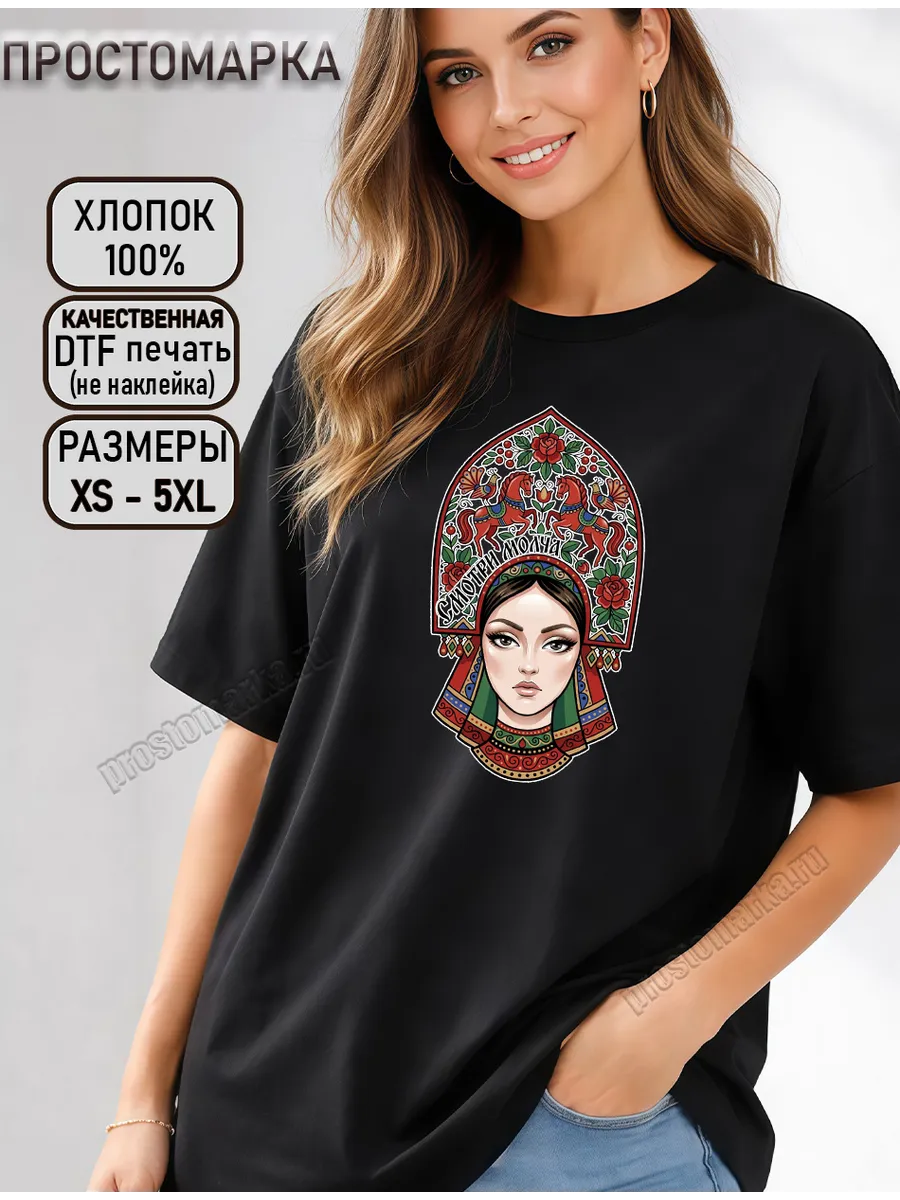 Футболка с матрешкой от бренда «Просто Марка» — это стильный и оригинальный подарок для любой девушки. Изготовленная из 100% хлопка, она подарит вам комфорт и приятные тактильные ощущения. Яркий дизайн с изображением рыжей матрешки, украшенной символикой России, станет настоящим акцентом вашего образа. Эта футболка отлично подойдет для вечеринок, встреч с друзьями или просто для прогулок по городу. Благодаря универсальному дизайну, она прекрасно впишется в любой гардероб и станет любимой вещью на каждый день.