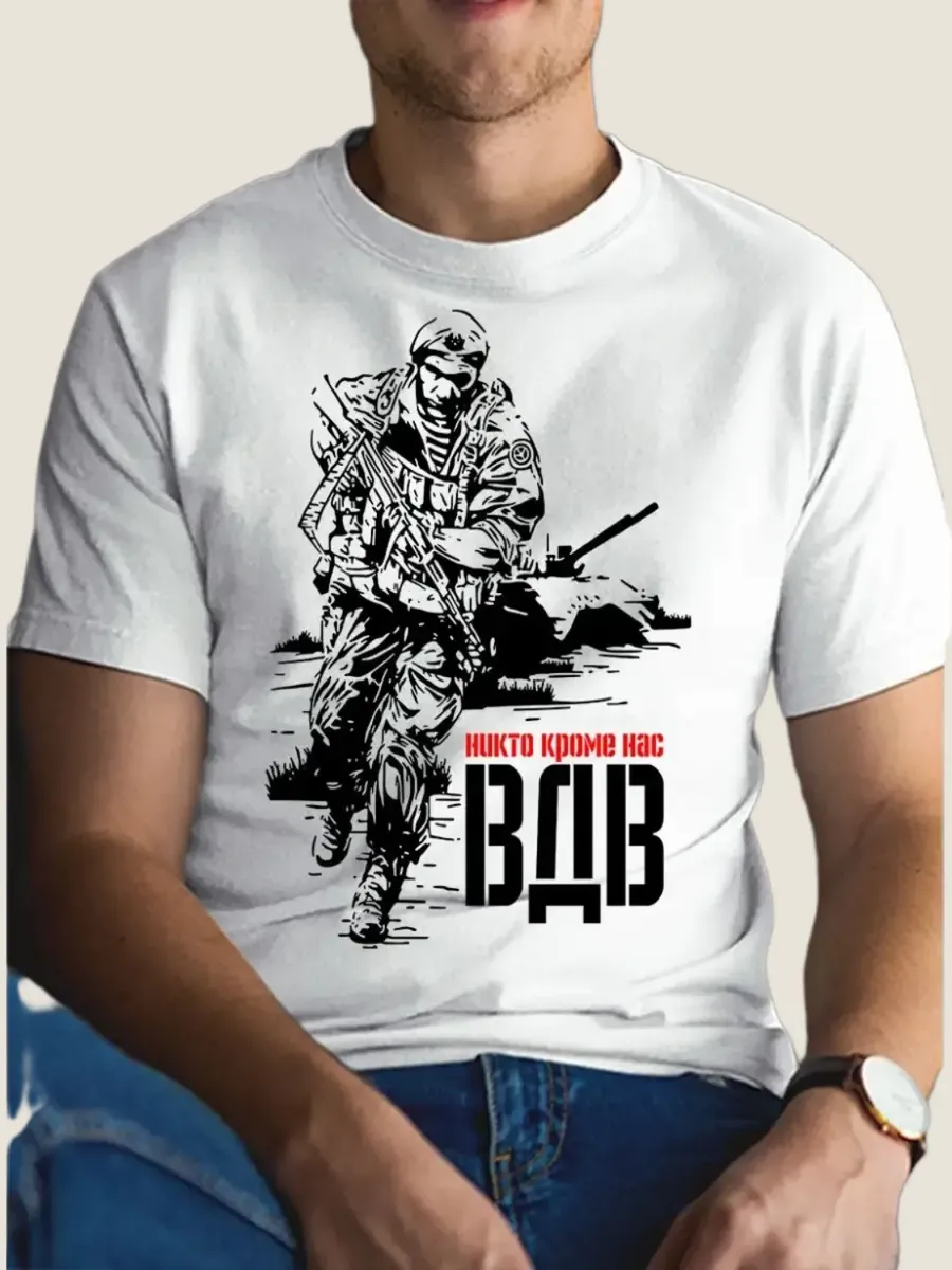 Мысли о них окрыляют сердце... Мужская футболка ВДВ – это не просто одежда. Это символ силы, духа и солидарности. Прочувствуйте силу и драйв десантных войск на себе, сделав выбор в пользу уникальной футболки, которая станет неповторимым дополнением вашего стиля.
