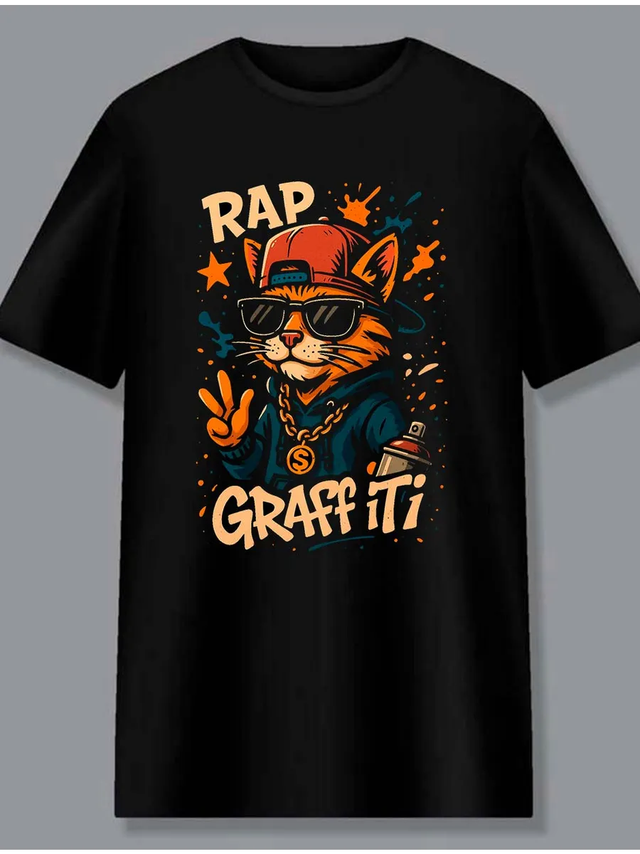 Вырази свою индивидуальность с новой футболкой с принтом граффити от "Просто Марка"! Эта базовая футболка, выполненная из 100% хлопка, подарит тебе комфорт и стиль в любой ситуации. Удлиненная модель свободного кроя идеально подойдет для повседневной носки, а дизайнерский принт с котом в стиле рэп-граффити станет ярким акцентом твоего образа. Футболка с дтф печатью отличается высоким качеством и долговечностью, сохраняя насыщенность красок даже после многочисленных стирок. Эта футболка - отличный подарок для любителей уличной моды и оригинальных вещей. Ее универсальный дизайн и комфортная посадка сделают ее незаменимой частью твоего гардероба. Ощути свободу и стиль с футболкой "Просто Марка"!
