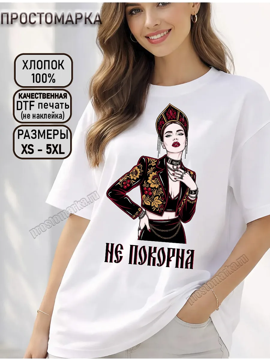 Футболка с матрешкой от бренда «Просто Марка» — это стильный и оригинальный подарок для любой девушки. Изготовленная из 100% хлопка, она подарит вам комфорт и приятные тактильные ощущения. Яркий дизайн с изображением рыжей матрешки, украшенной символикой России, станет настоящим акцентом вашего образа. Эта футболка отлично подойдет для вечеринок, встреч с друзьями или просто для прогулок по городу. Благодаря универсальному дизайну, она прекрасно впишется в любой гардероб и станет любимой вещью на каждый день.