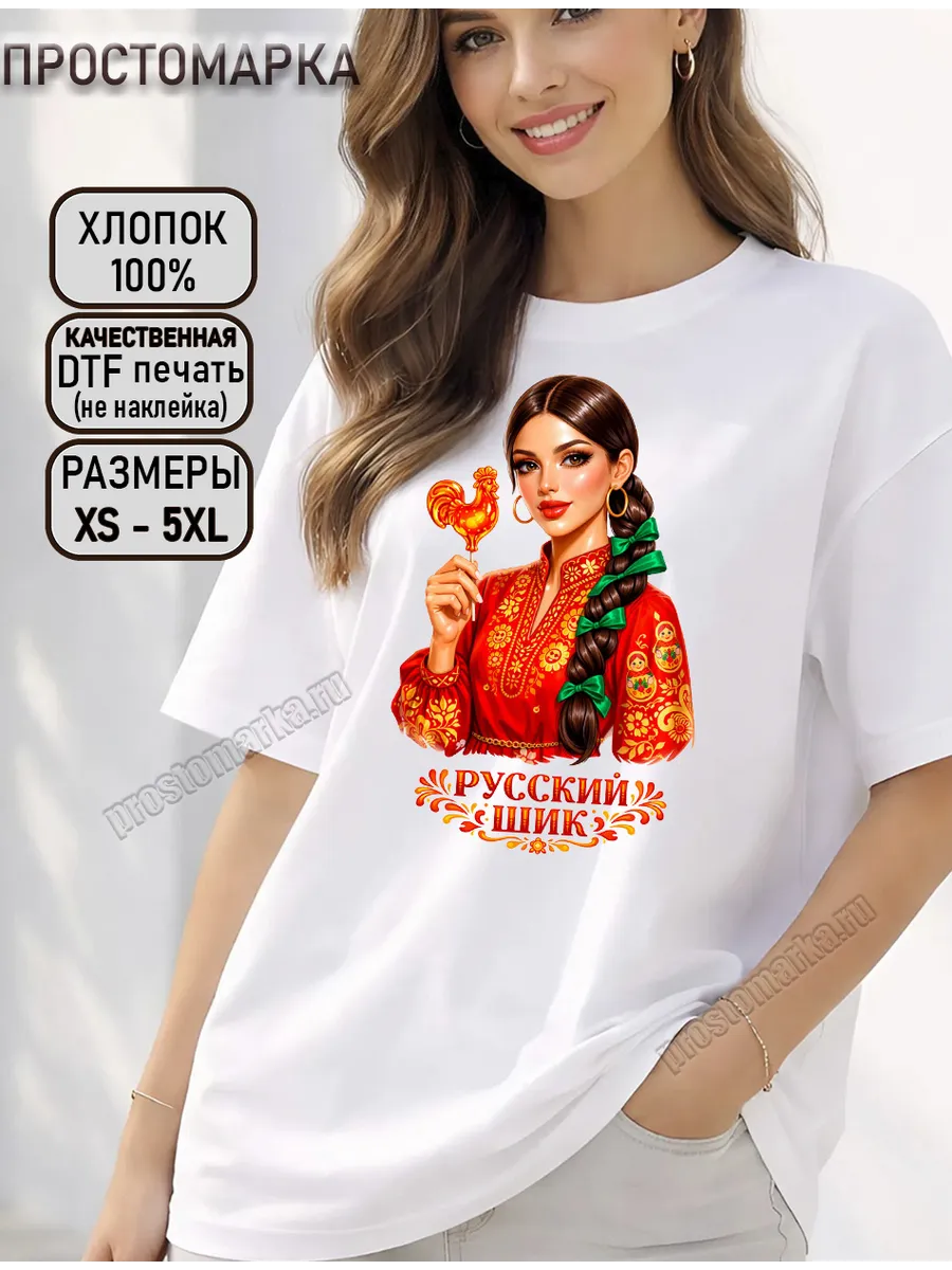 Футболка с матрешкой от бренда «Просто Марка» — это стильный и оригинальный подарок для любой девушки. Изготовленная из 100% хлопка, она подарит вам комфорт и приятные тактильные ощущения. Яркий дизайн с изображением рыжей матрешки, украшенной символикой России, станет настоящим акцентом вашего образа. Эта футболка отлично подойдет для вечеринок, встреч с друзьями или просто для прогулок по городу. Благодаря универсальному дизайну, она прекрасно впишется в любой гардероб и станет любимой вещью на каждый день.