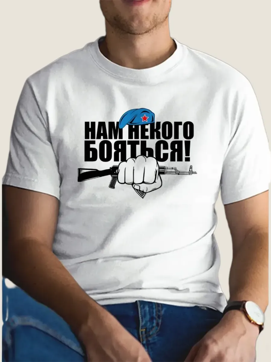 Мысли о них окрыляют сердце... Мужская футболка ВДВ нам некого бояться– это не просто одежда. Это символ силы, духа и солидарности. Прочувствуйте силу и драйв десантных войск на себе, сделав выбор в пользу уникальной футболки, которая станет неповторимым дополнением вашего стиля.