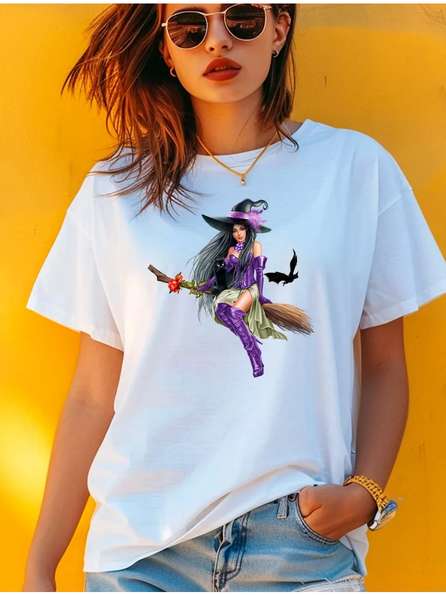 Замучились долго искать идеальный наряд для Хэллоуина? Не волнуйтесь, мы знаем, как сохранить дух этого замечательного праздника и создать эффектный образ, который поразит всех вокруг. Футболка на Хэллоуин с изображением ведьмы на метле и тыквой - идеальный вариант для вас!