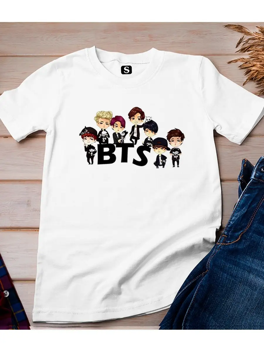 Женская футболка прямого кроя с принтом BTS.Отличное решение для подарка себе и близким.Ткань футболки-100% Хлопок, что гарантируетВам комфортное использование на протяжении долгого времени.Мягкий натуральный хлопок гипоаллергенен, не раздражает кожу и позволяет ей дышать.Супер легкая, приятная телу ткань легко гладится.