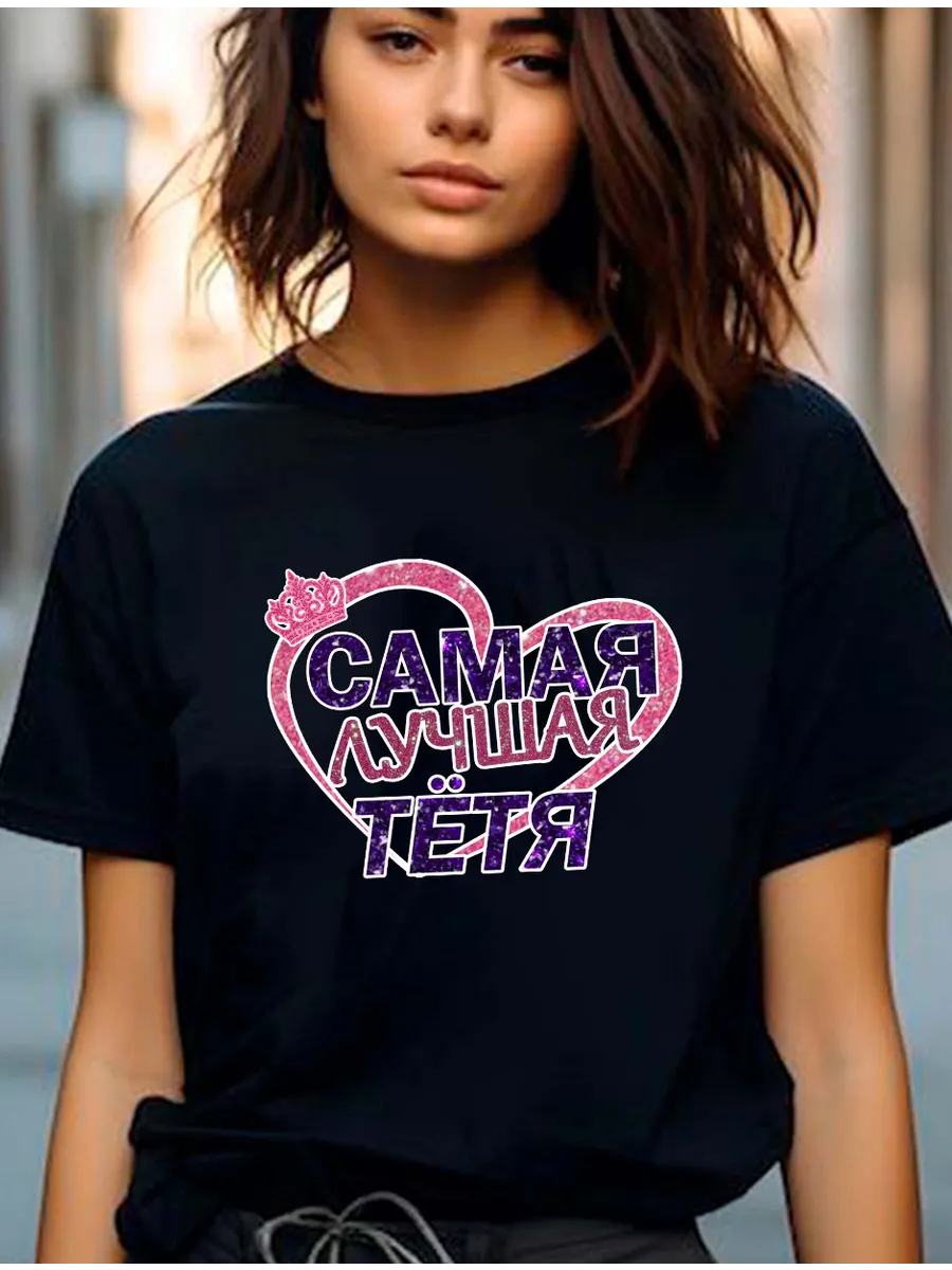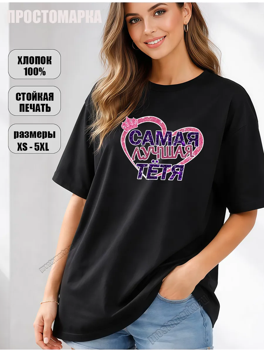 Представляем вам базовую футболку с надписью самая лучшая тетя подарком на Новый год 2026! Эта футболка выполнена из 100% хлопка, что гарантирует вам комфорт и приятные тактильные ощущения. Свободный крой не сковывает движений, а дышащий материал обеспечит вам свежесть в течение всего дня. На футболке красуется яркая аппликация, выполненная с помощью технологии DTF печати, которая гарантирует стойкость и яркость рисунка. Черный цвет этой футболки - универсальный и стильный, он легко сочетается с любыми другими предметами гардероба. Эта футболка станет отличным подарком для сестры, свекрови, внучки,дочки, мамы, тети, бабушки - любой любимой женщине в вашей жизни. Она подойдет как для повседневной носки, так и для создания стильных образов на вечер. Порадуйте своих близких этим практичным и стильным подарком на Новый год! подарок на 8 марта, день рождения